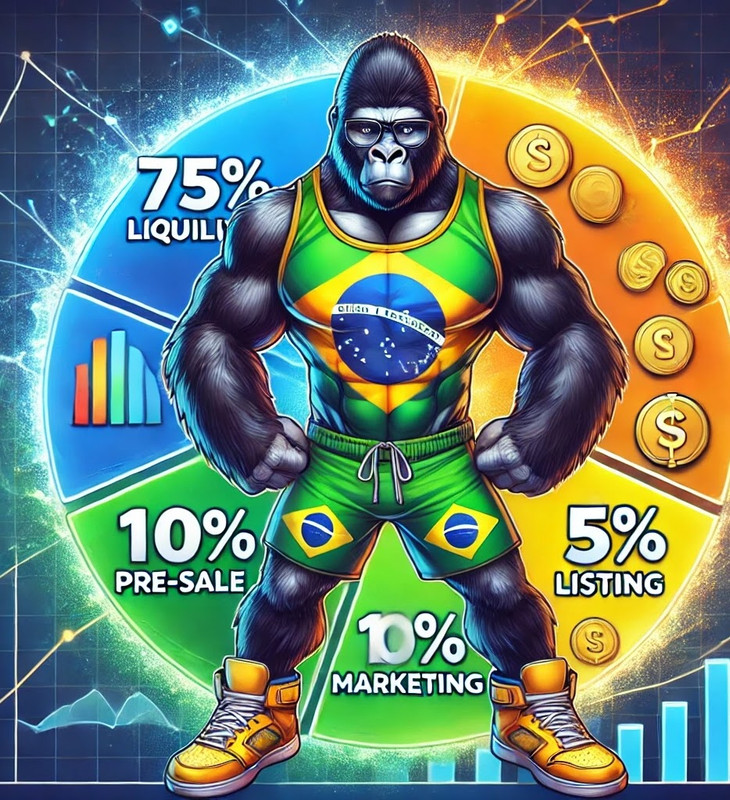 Distribuição: 10% pré-venda, 10% marketing, 5% listagem e 75% líquidez